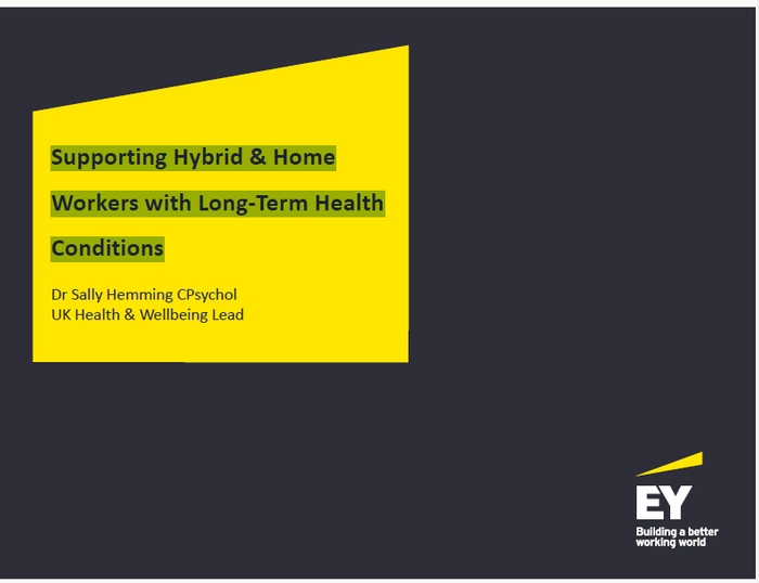 This session will focus on different forms of support for workers with long-term conditions, at home or hybrid and provide greater awareness about the support needs of workers with long-term health conditions to help facilitate employer support.