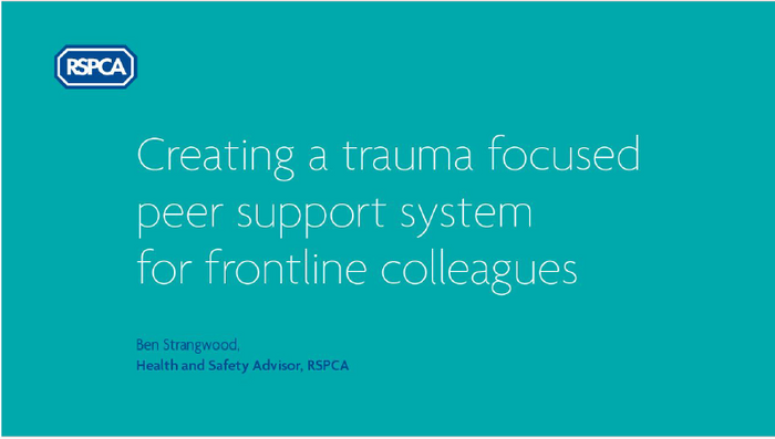The RSPCA’s journey to acknowledging the need for a peer support system for colleagues working in an environment where they are exposed to potentially traumatic incidents, and the introduction of TRiM (Trauma Risk Management). Learning outcomes for delegates: Understanding the challenges and rewards of creating a peer support system.
