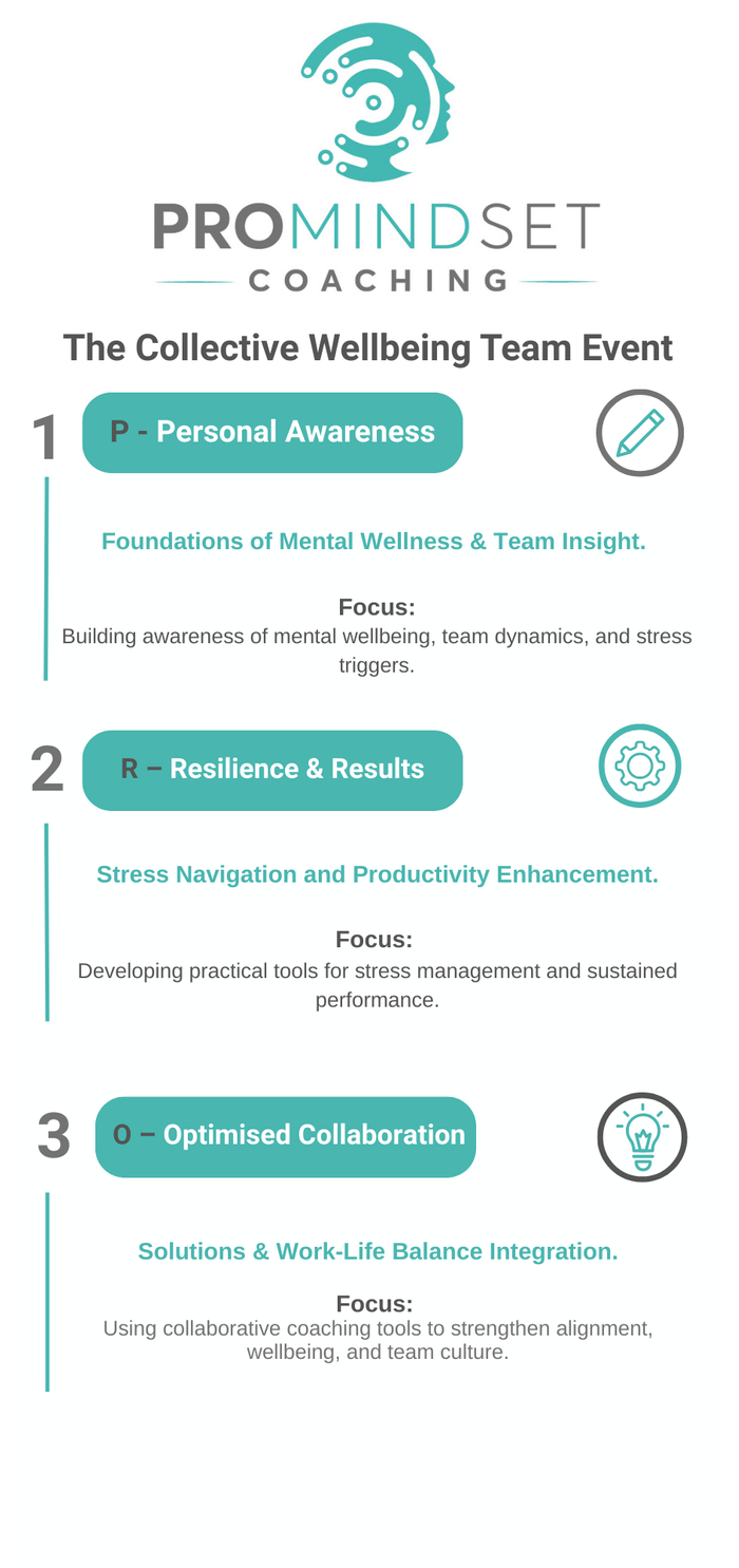 • P – Personal Awareness (Foundations & Insight): We focus on building a deep awareness of mental wellness, team dynamics, and specific stress triggers. Delegates leave this session with a heightened recognition of how mental wellness directly impacts their productivity and a readiness to engage in improving the team's overall well-being.