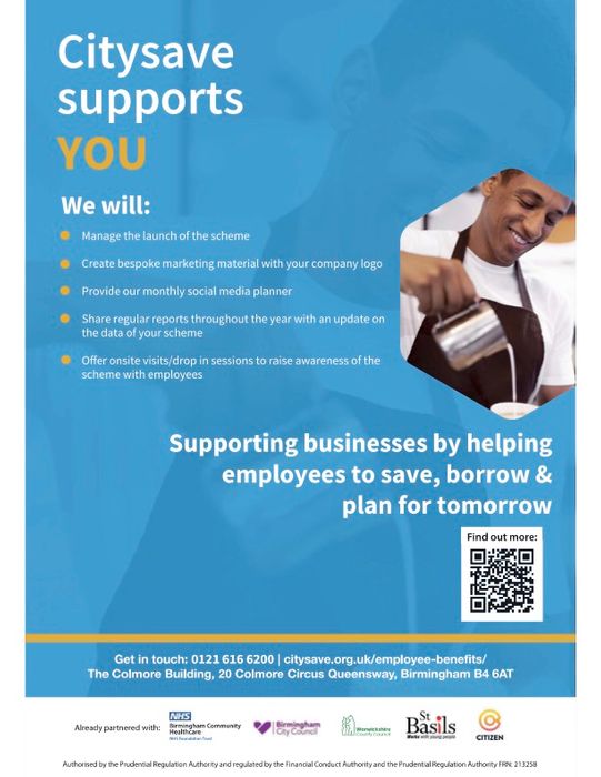 With over 36 years of experience and partnerships across Birmingham and the wider West Midlands, Citysave offers a practical, ethical solution to support financial resilience at work — at no cost to your organisation.
